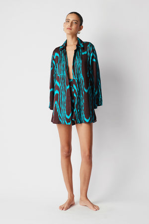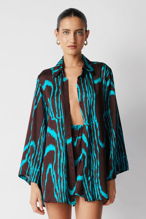 Camisa con cuello, de corte holgado y mangas largas. Estampada y confeccionada en el mas suave algodón