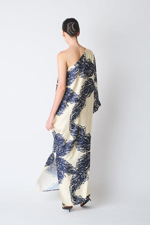 Vestido de un solo hombro, manga larga con elástico en puño de silueta amplia.